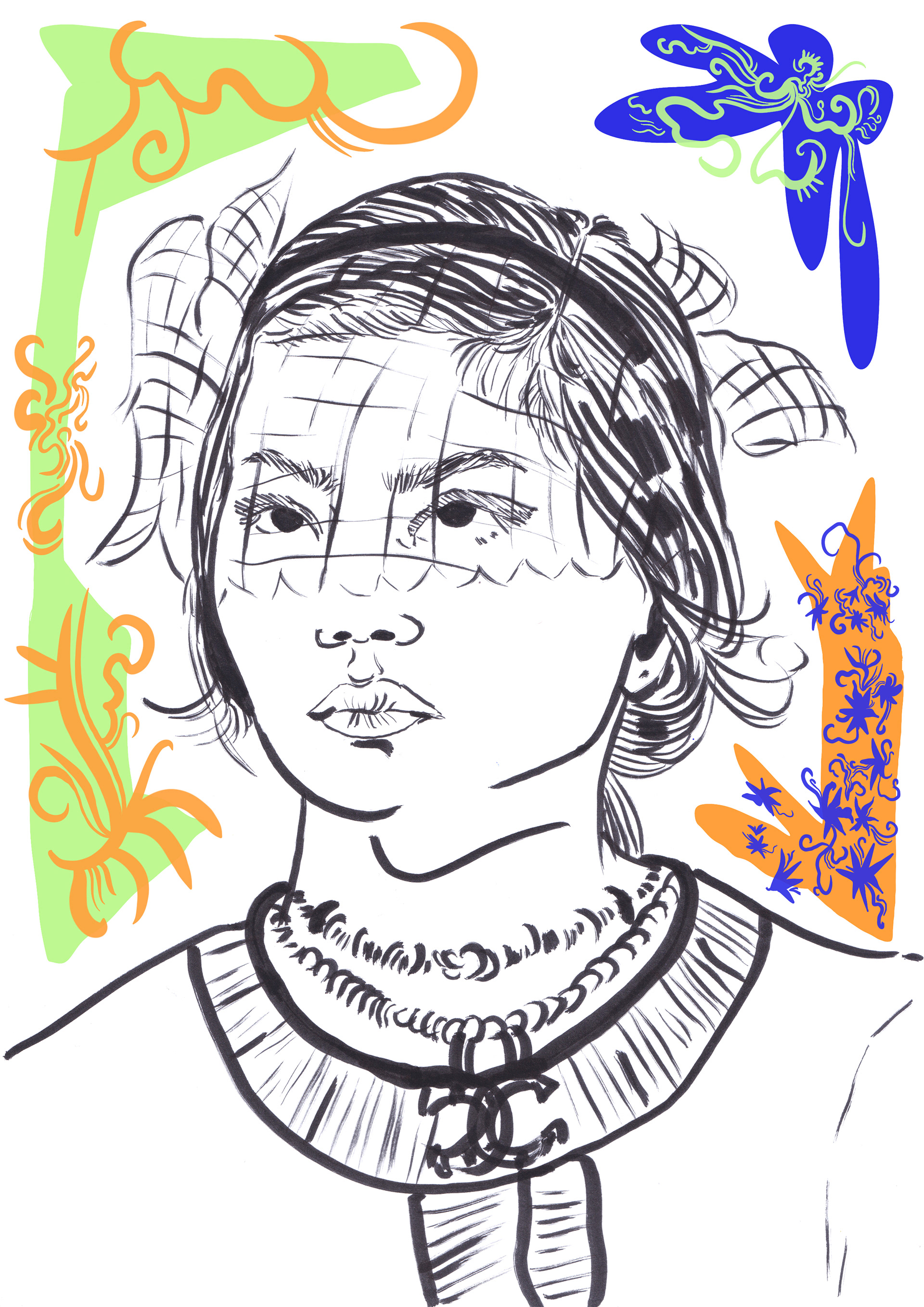 A selection of close up portraits from the SS21 Chanel show with a colourful twist.