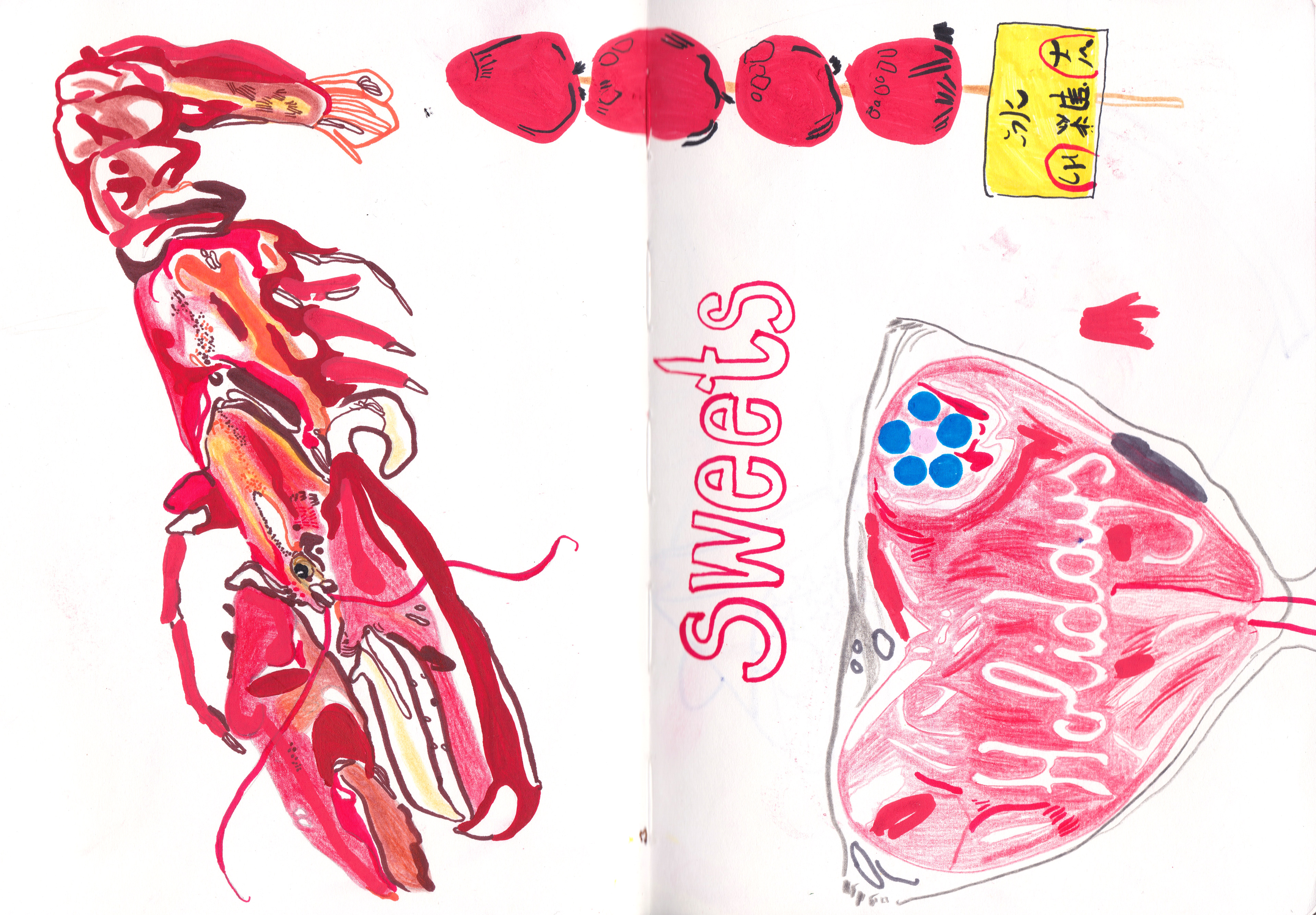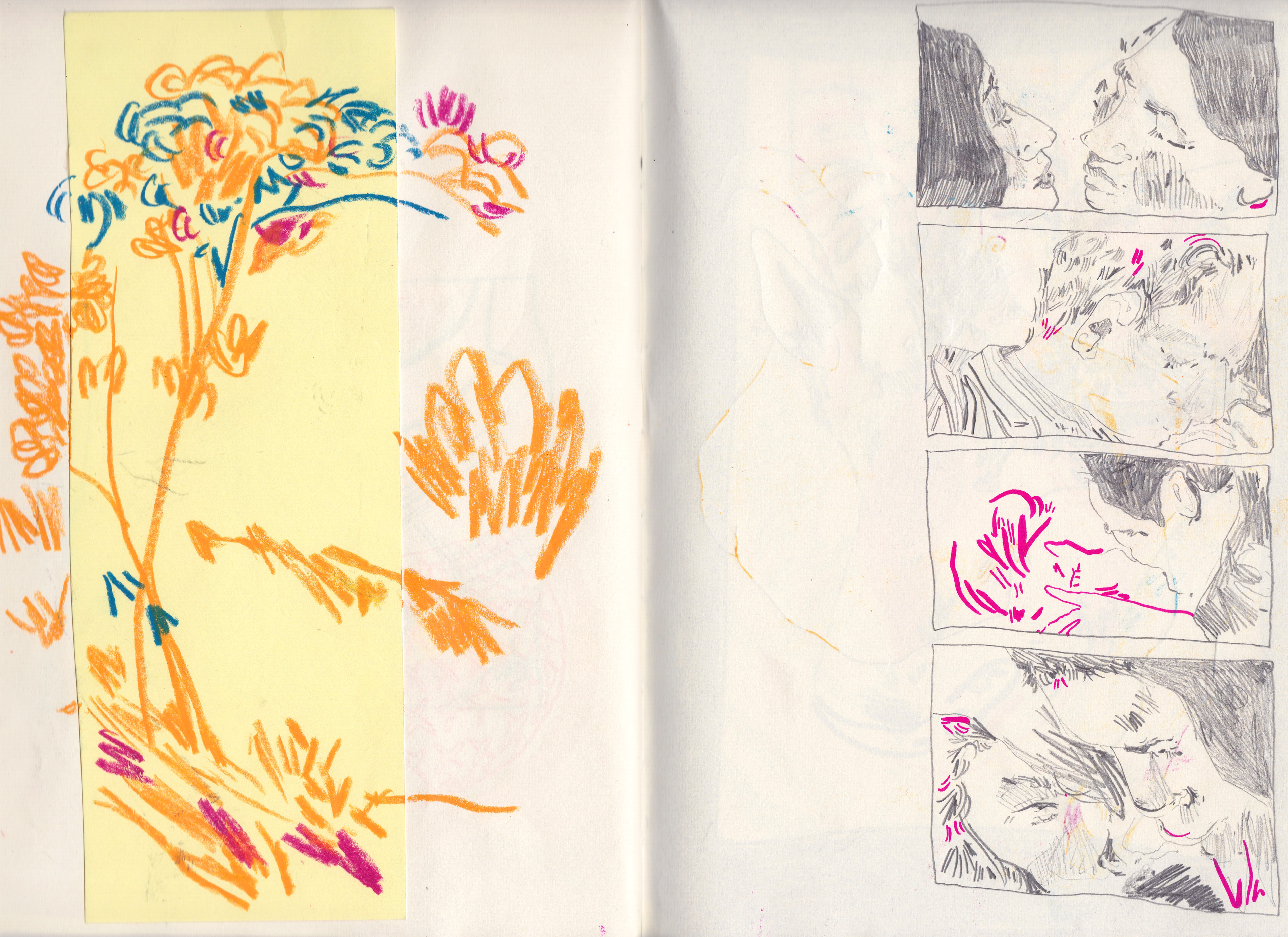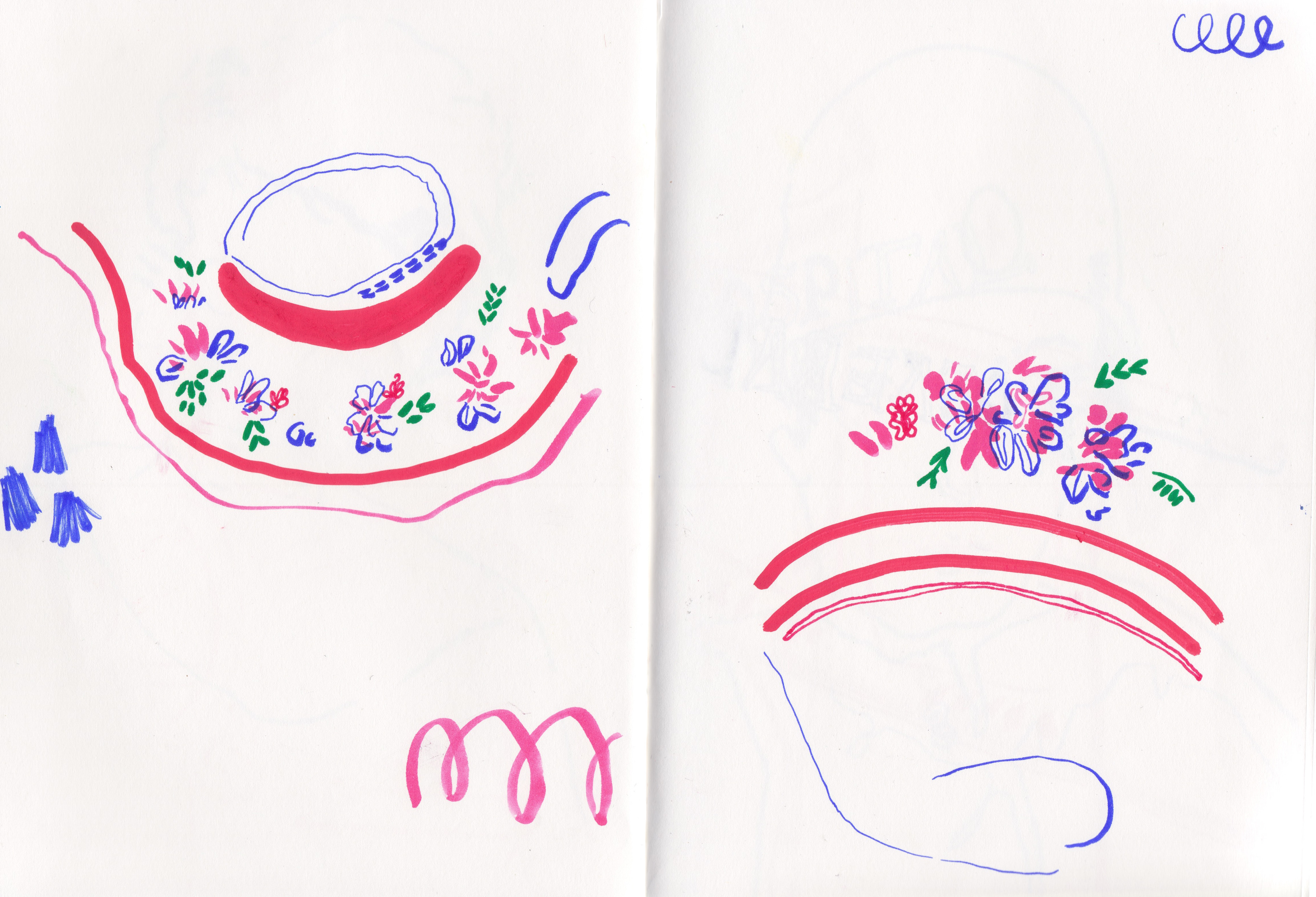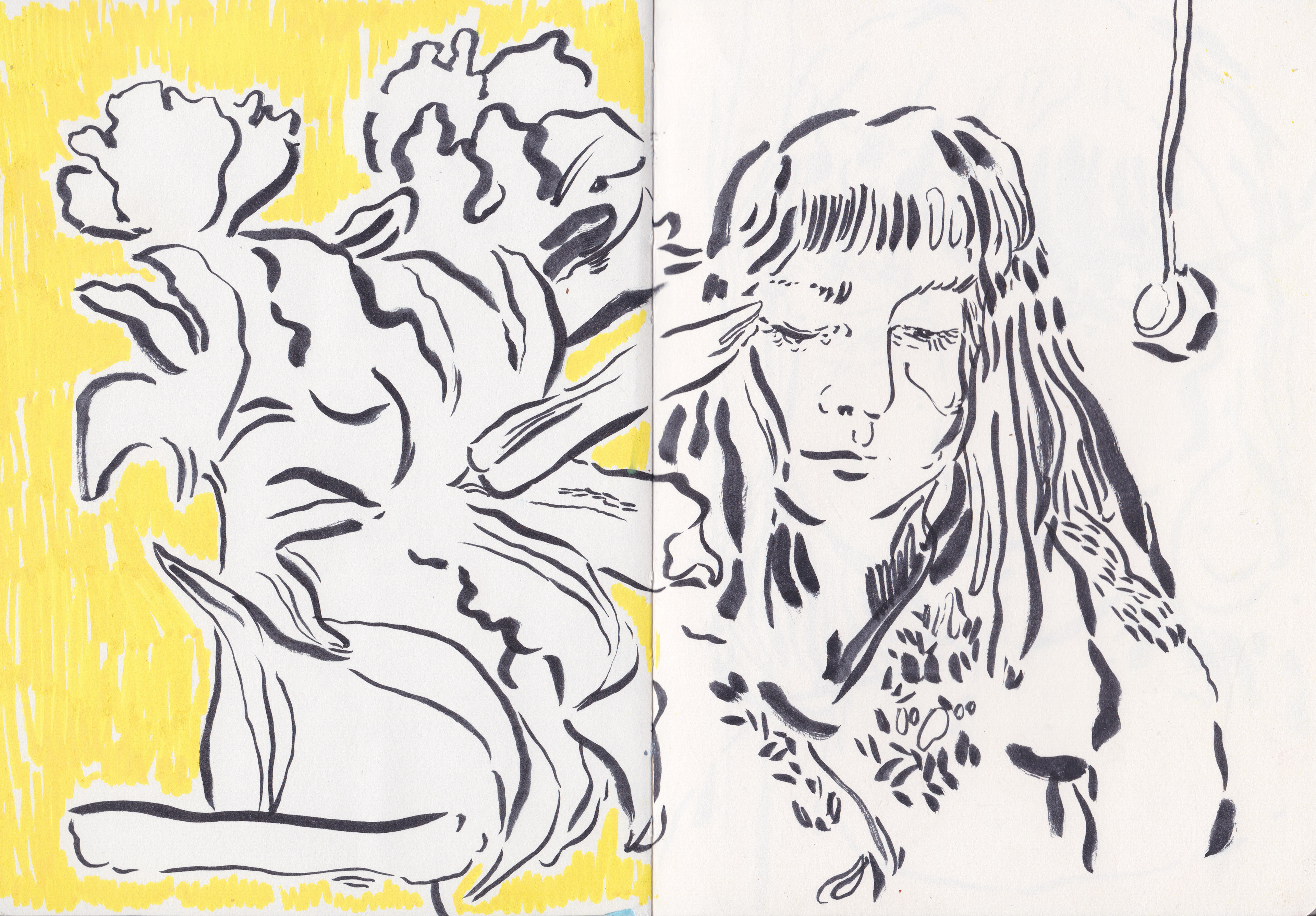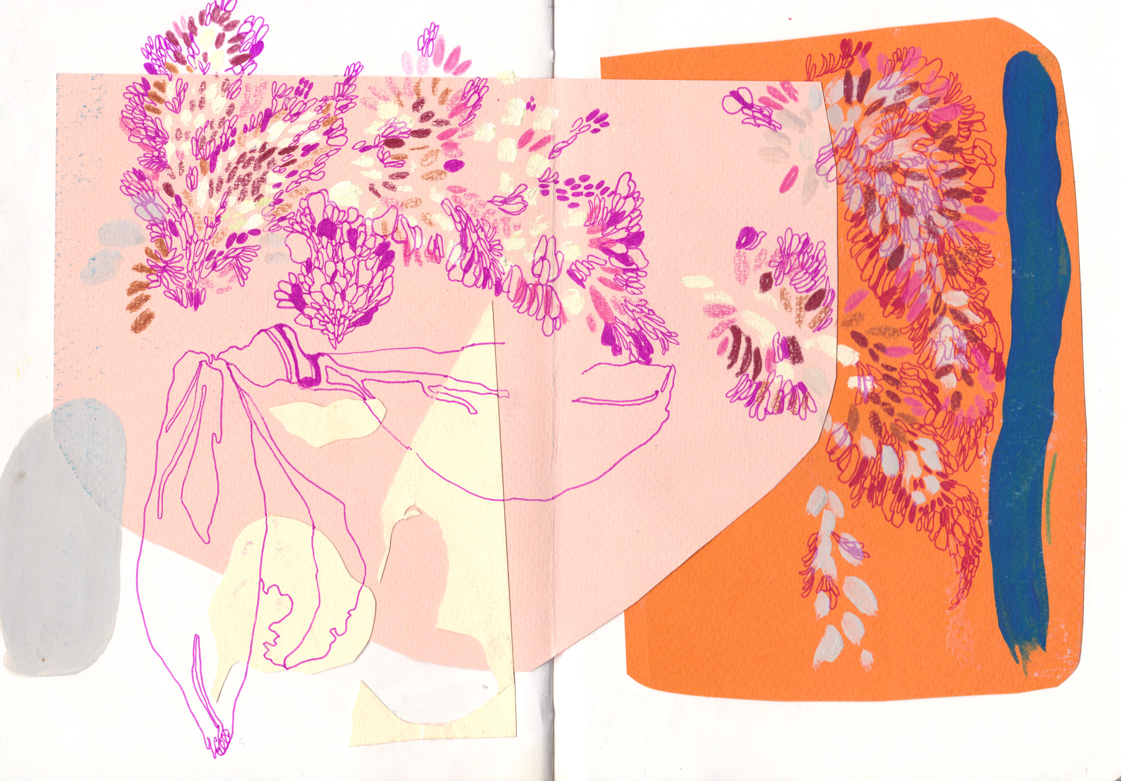 A selection of sketchbook spreads of my daily drawings and illustrations created on the go.